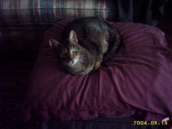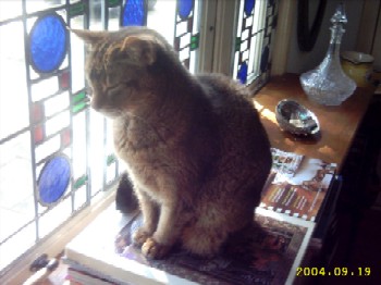 Dit is Frouke, Ze zit een beetje te dommelen in de vensterbank na een plakje rosbief. Frouke is een zeer eigenwijs en jaloers dametje maar uiteraard ontzettend lief. Een vrouwtje welke zich sterk stand heeft gehouden door mannetjes soortgenoten welke in haar leven gepasseerd zijn. Het waren er drie en Bobbie van de buurman als vierde mag groot, rood en mooi zijn maar zij is de baas, hij mag van haar binnenkomen. Zij laat toe dat ik hem ook lief vind. Dat kost wat incasseringsvermogen hoor. Ik maak het altijd goed want er is maar één de bazin en dat ben ik geloof ik.... of niet?.